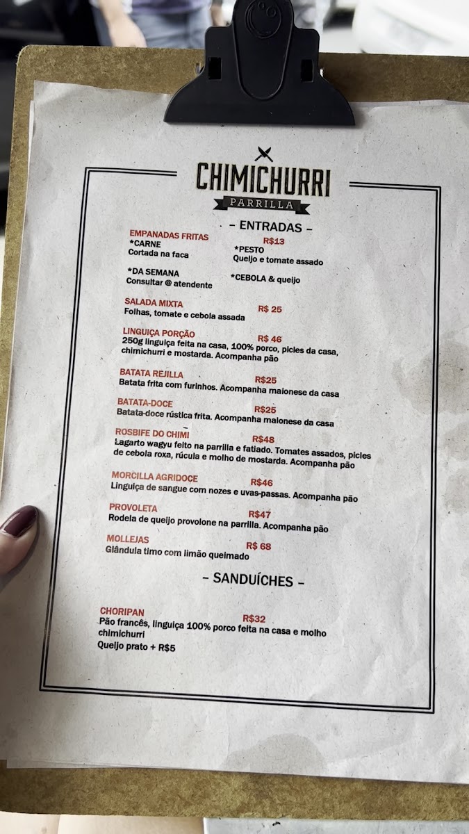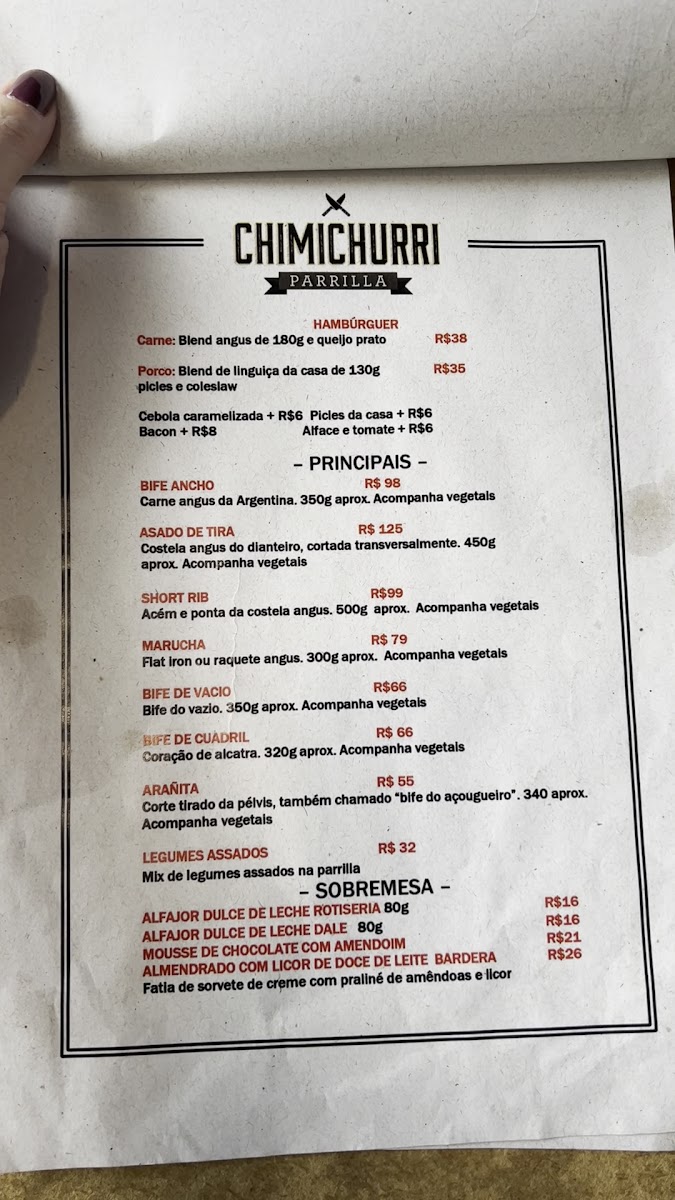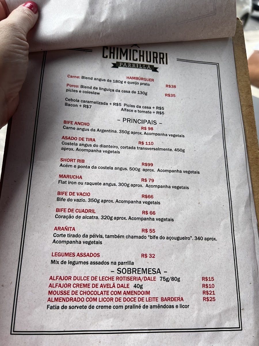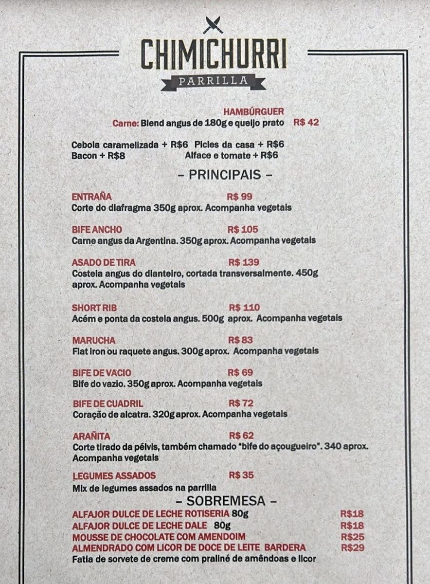 Chimichurri Parrilla Menu